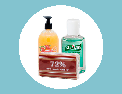 Мыло и диспенсеры, антисептические гели