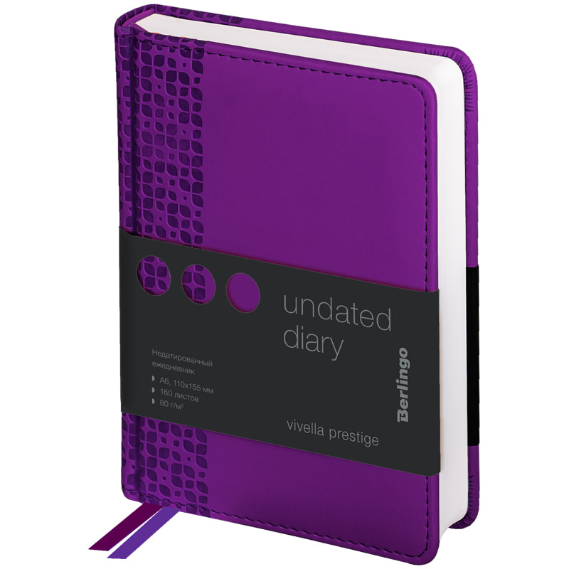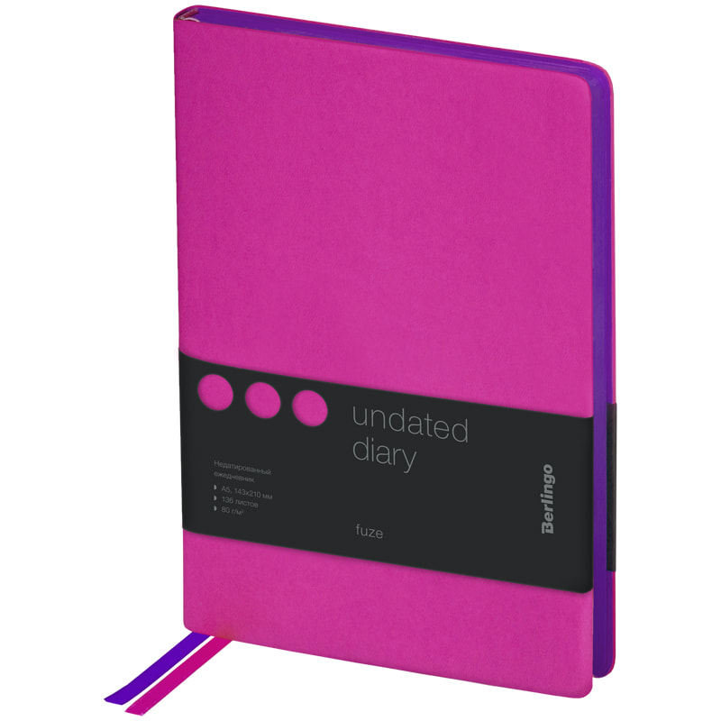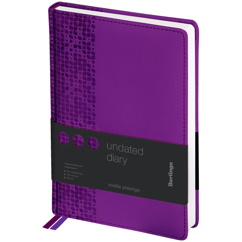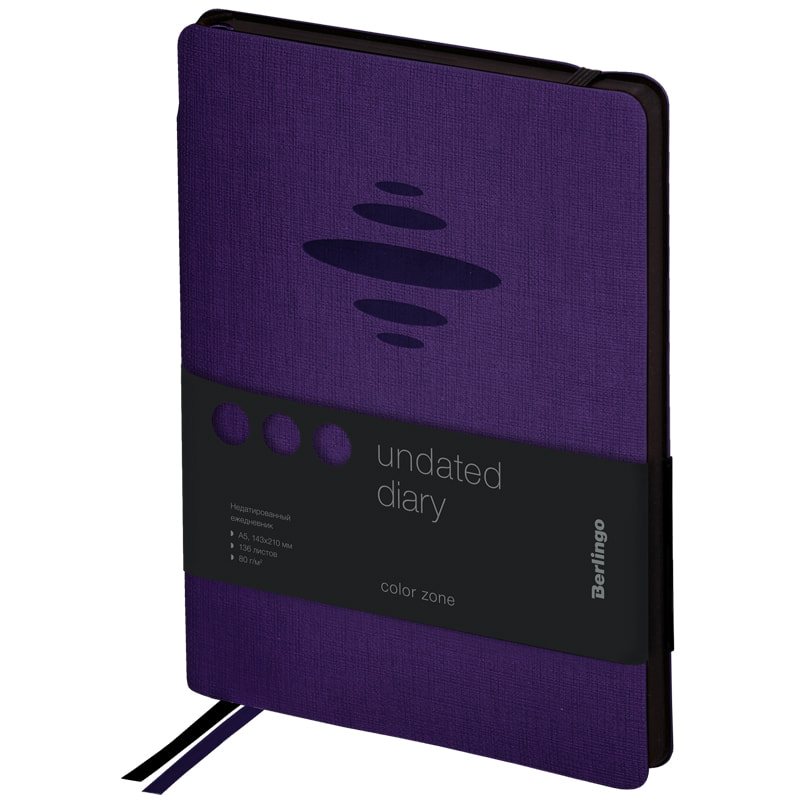 Ежедневник недатированный, A5, 136л., кожзам, Berlingo "Color Zone", черн. срез, с резинкой, фиолет.