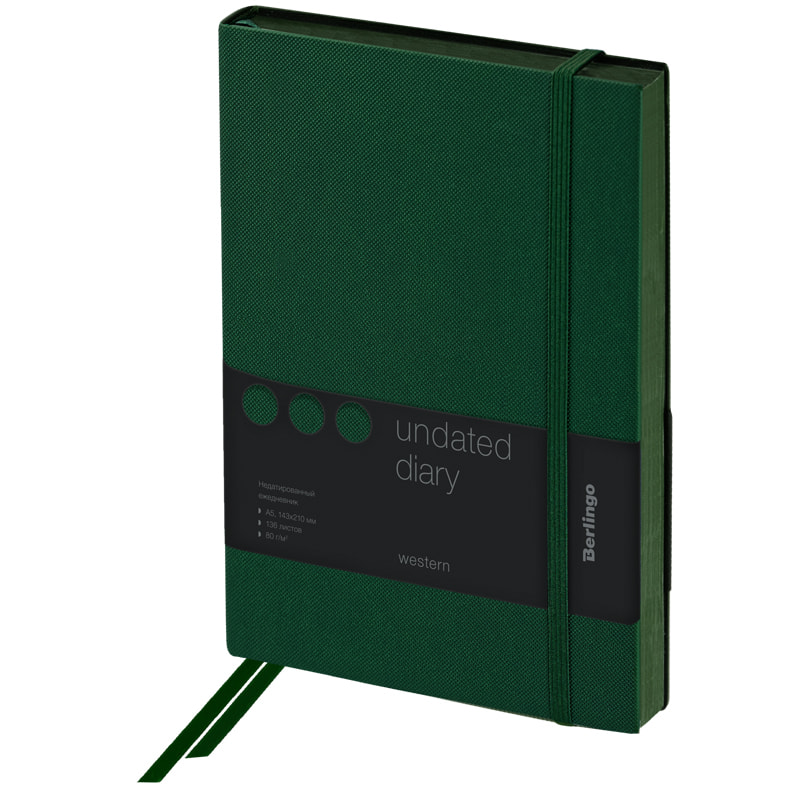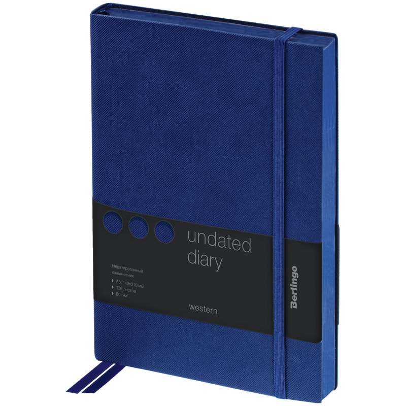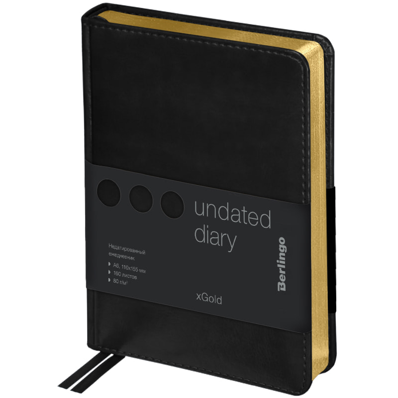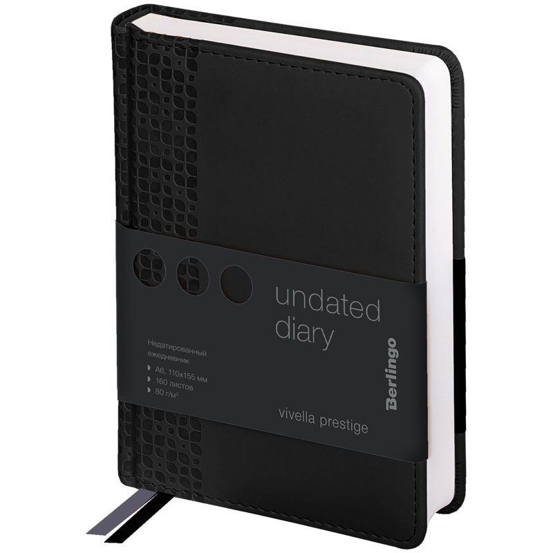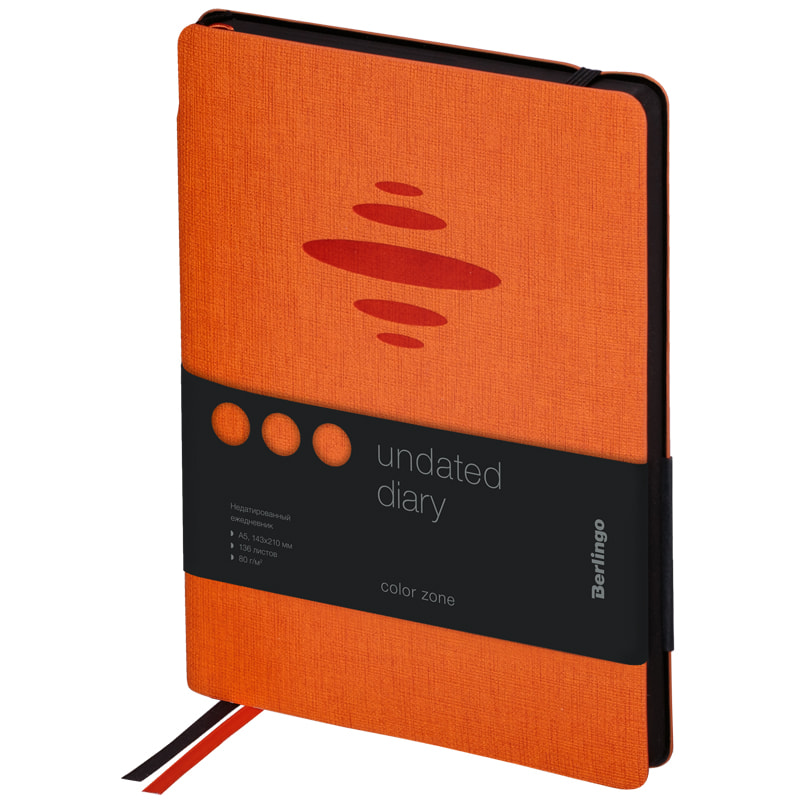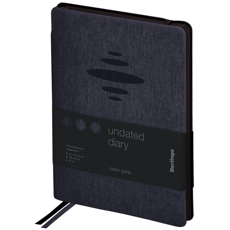 Ежедневник недатированный, A5, 136л., кожзам, Berlingo "Color Zone", черный срез, с резинкой, черный