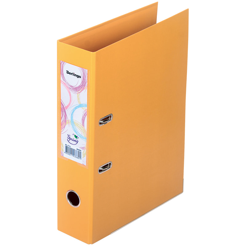 Папка-регистратор Berlingo "Spring", 70мм, бумвинил, двухстор., с карманом,ниж. мет. кант, оранжевая