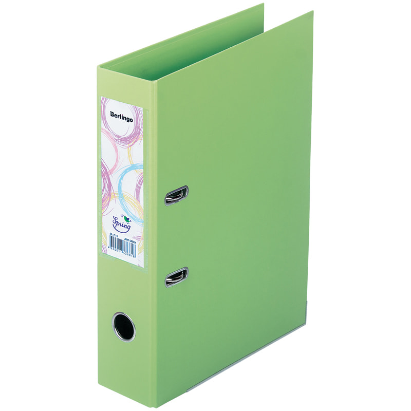 Папка-регистратор Berlingo "Spring", 70мм, бумвинил, двухстор., с карманом, ниж. мет. кант, фисташк.