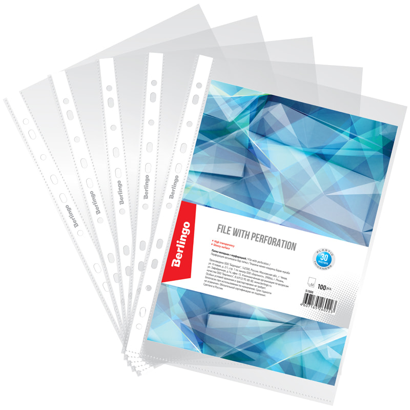 Папка-вкладыш с перфорацией Berlingo, А4, 30мкм, глянцевая